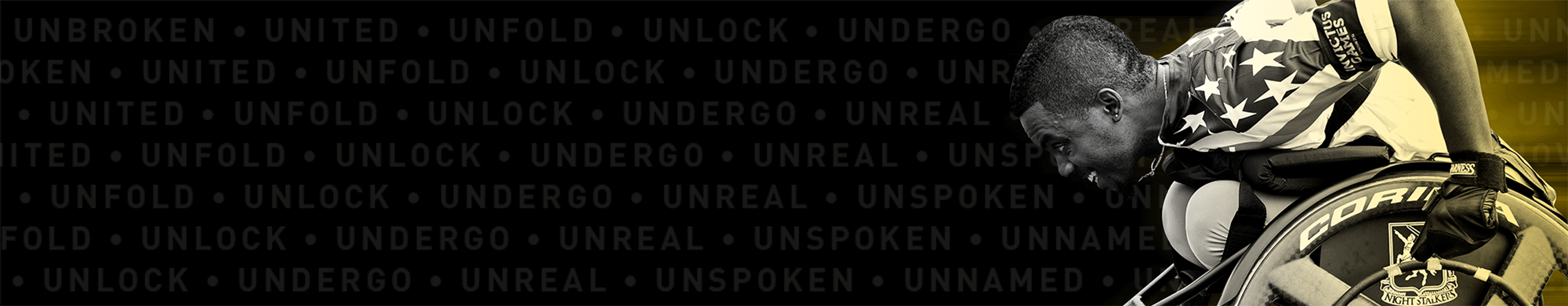 We used a yellow motion blur to indicate mobility and movement of the athletes and a black background tiled with positive “UN” words like “unbroken” and “unconquered.” Wherever the motion blur overlaid the background, the words were revealed within the yellow blur. Other words could be highlighted at random, which worked nicely for banner ad animations.